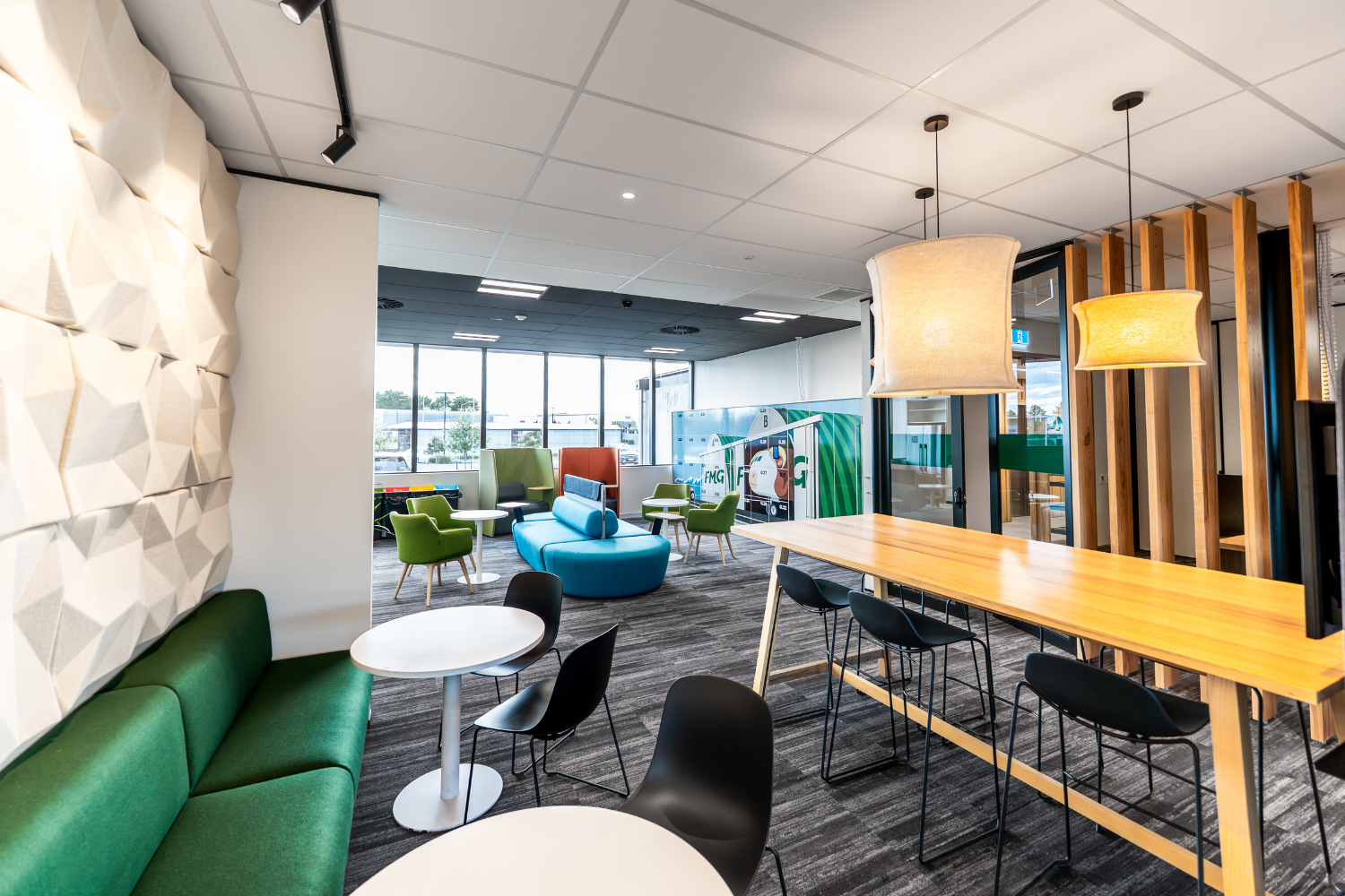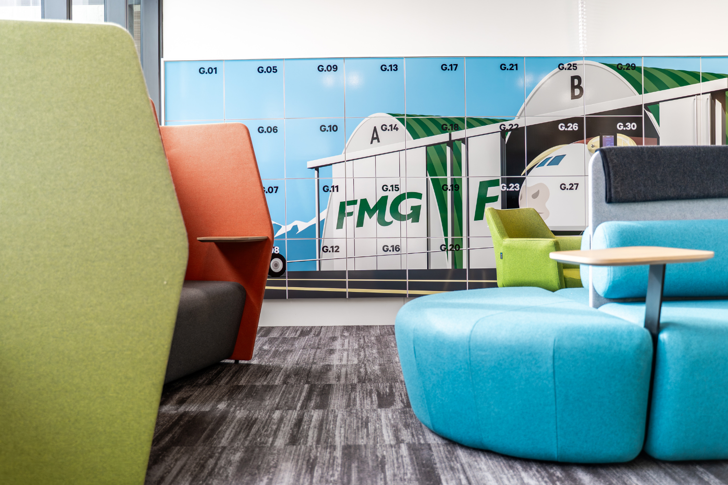 The objective was to deliver a professional, highly functional branch environment that aligned with FMG’s brand while supporting the practical needs of a busy airport location. Careful coordination was required across multiple trades to maintain programme momentum and ensure a consistent standard of finish throughout the space.